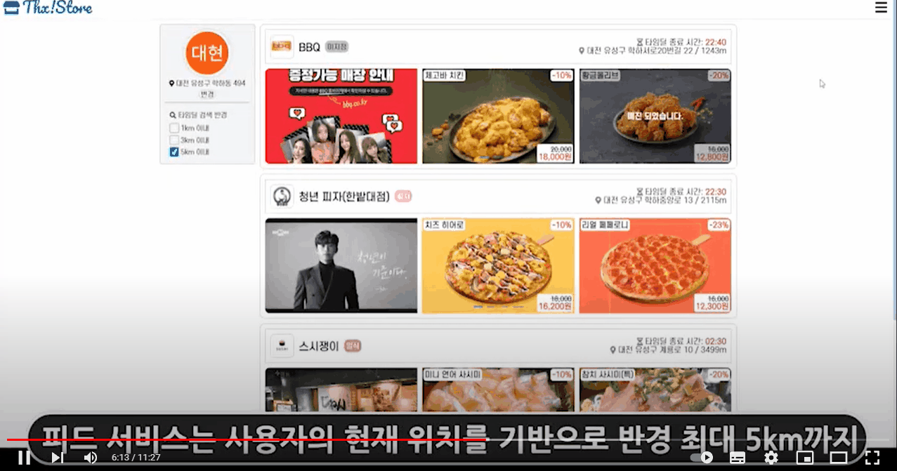 - 박대현 - 가게 매니저용 라이브 방송 페이지 개발 - openvidu를 이용하여 실시간 영상 송출 기능 구현 - openvidu를 이용하여 실시간 채팅 기능 구현 - 사용자용 타임딜 피드 페이지 개발 - 위치 설정을 위해서 프로필 페이지와 회원가입 페이지에서 사용자 좌표 자동 수집 기능 구현 - 수집된 좌표를 통해서 사용자로부터 일정 거리 내에 있는 타임딜 진행 가게 목록 불러오기 구현 - swiper를 이용하여 현재 진행되는 타임딜 상품 목록과 진행중인 가게 정보 표시 (재고가 떨어질 경우도 반영) - 사용자용 가게 페이지 개발 - 가게 상세 정보를 조회할 수 있는 페이지 개발 - 타임딜 등록된 메뉴들 예약할 수 있는 페이지 개발 - masonry 디자인 도입 - 재고 없을 경우 선택 불가 처리 - 메뉴창과 메뉴 이미지 연동 처리를 통해 이미지 선택만으로 메뉴 선택 가능하도록 구현 - 가게 매니저 라이브를 시청 가능한 페이지 개발 - 사용자는 직접 방송을 송출하지 않도록 수정 - 채팅 시 채팅 길이에 맞춰 스크롤 자동으로 이동 기능 구현 ( 가게 매니저용 라이브 페이지에도 적용) - 그 외 기능은 가게 매니저용 라이브 페이지와 같음 - 리뷰 등록 페이지 개발 - 사용자 전용 리뷰 관리 페이지 및 주문 내역 관리 페이지 보조 구현 - 성정욱 - 사용자 주문 목록 조회 - 사용자 리뷰 유무 판별 및 조회, 리뷰 작성 - 사장님 리뷰 유무 판별 및 조회, 리뷰 작성 - 리뷰 별점 도식화 - UCC 만들기 |