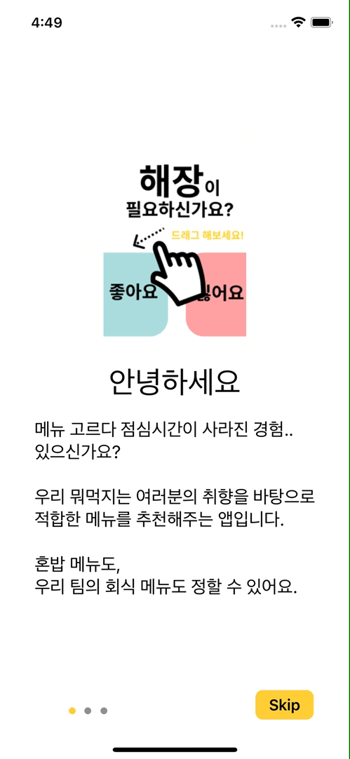 1, 2 페이지에서 Skip 버튼을 Tap한 경우, 바로 못먹는음식 페이지로 이동하도록 했습니다.