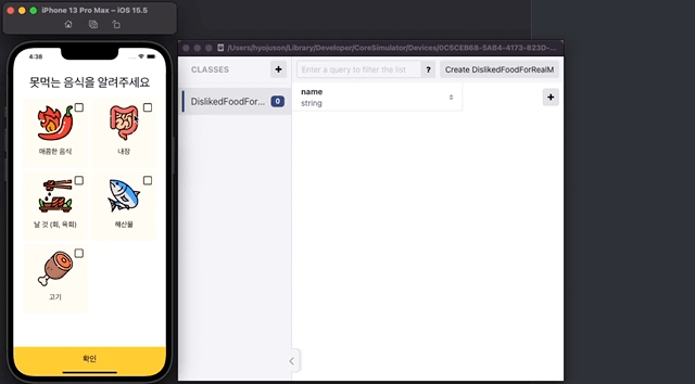 RealM을 연동하여 못먹는음식 데이터를 Local DB에 저장합니다.#2