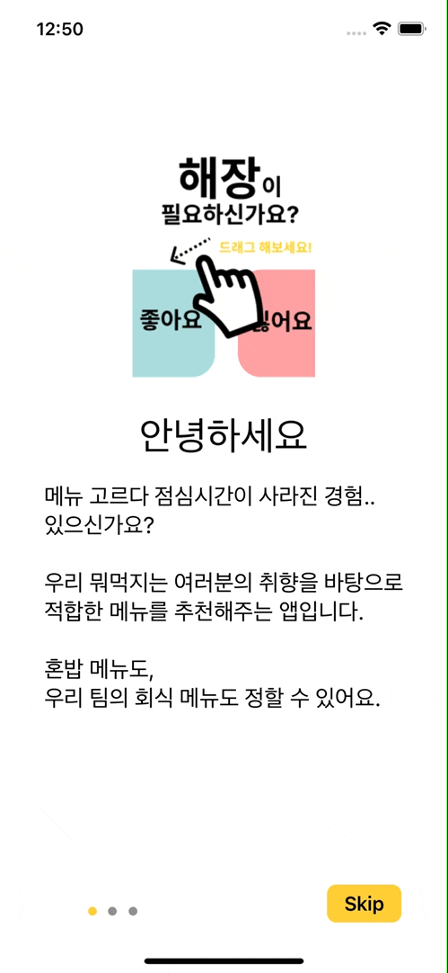 앱을 실행할 때마다 OnboardingPage를 보여주는 것은 비효율적이라 판단했고, 대부분의 상용 앱도 이런 형태롤 갖추고 있어 해당 방식을 택했습니다.