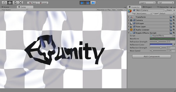 This is an image effect that distorts the rendered image with ripples on a water surface.