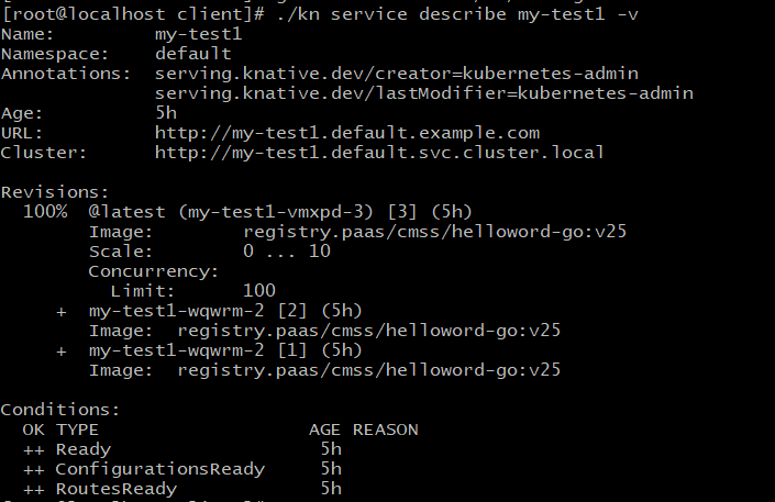 If a service has more than three revisons. The 'kn service describe -v' will show repetitive revisions.