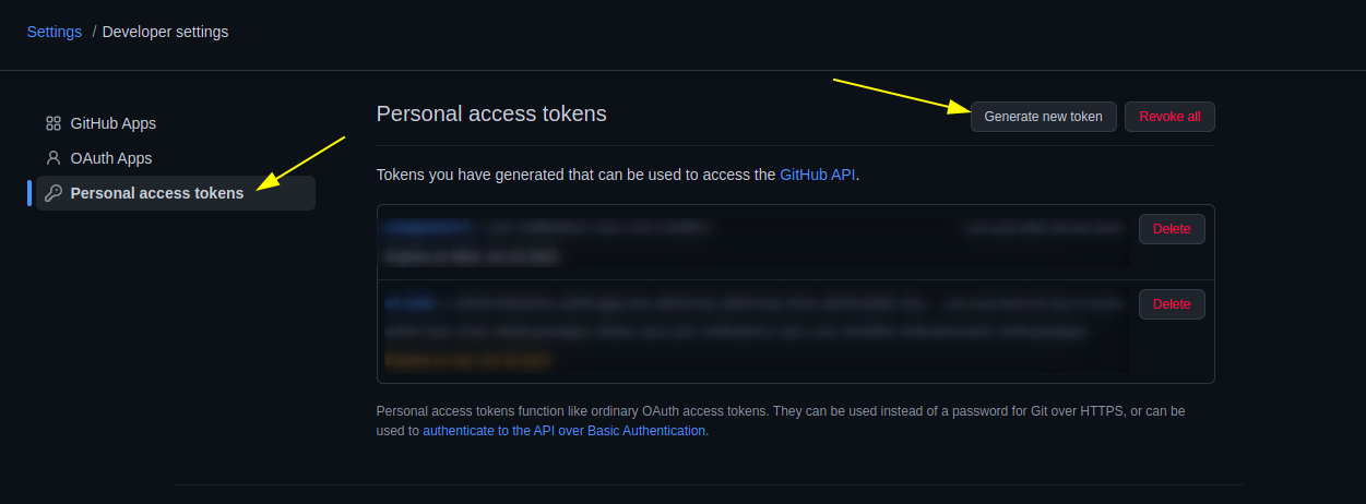 Developer Settings > Personal access Tokensand click onGenerate new token.