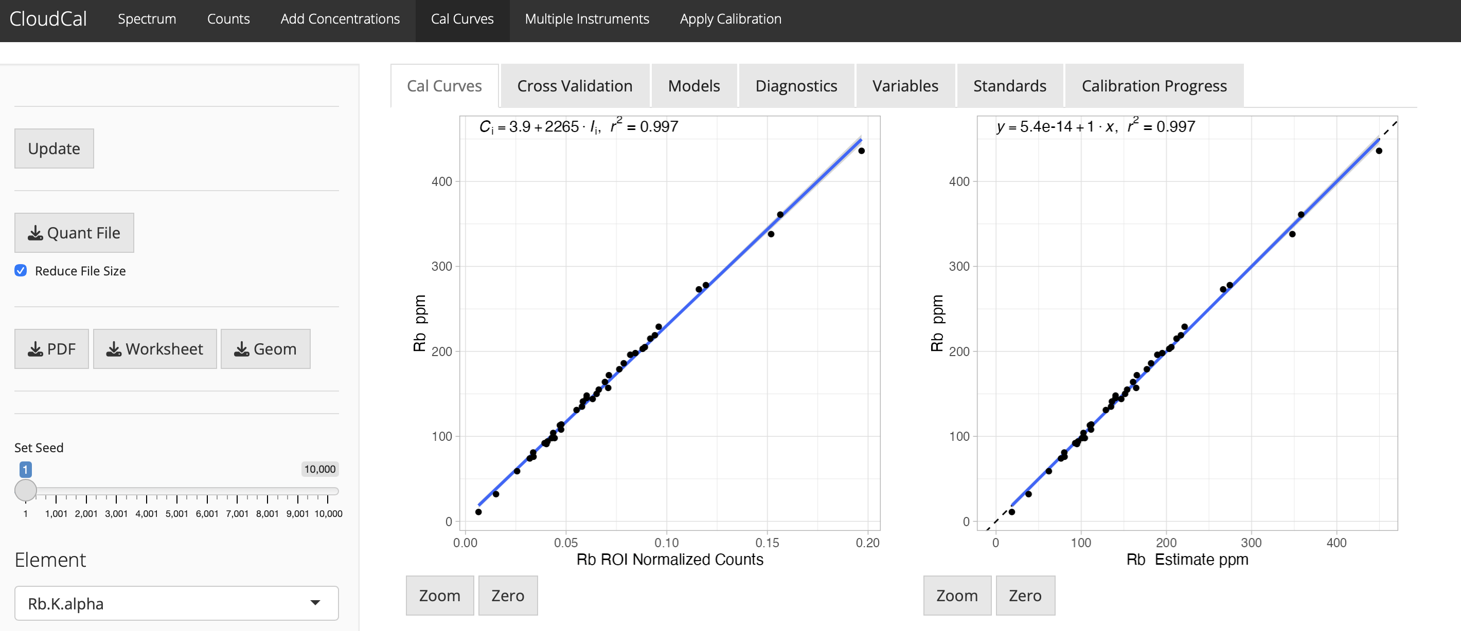 CloudCal is an open-source Shiny application for building and applying quantitative calibrations for X-ray fluorescence (XRF) spectrometers. It supports multiple instrument manufacturers, file formats, and calibration algorithms ranging from simple linear regression to advanced machine learning models.