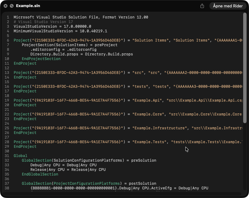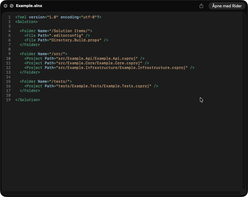 .sln- Visual Studio Solution files (text-based format).slnx- Visual Studio XML Solution files (XML format)
