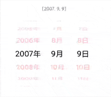 - 角度:滚轮效果上来看就是一个半圆,从正面看,选中的条目x轴方向角度是0,其上方的条目x轴角度的方向应该是0 至 90°,其下方的角度应该是0 至 -90°