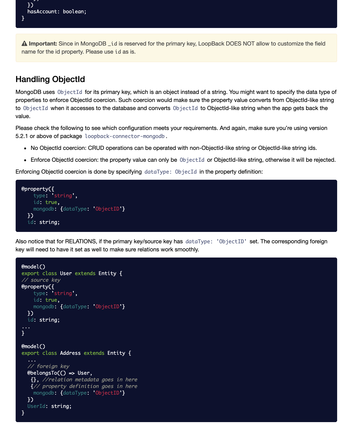 Handling ObjectId part is moved to mongo connector README, see loopbackio/loopback-connector-mongodb#576 |