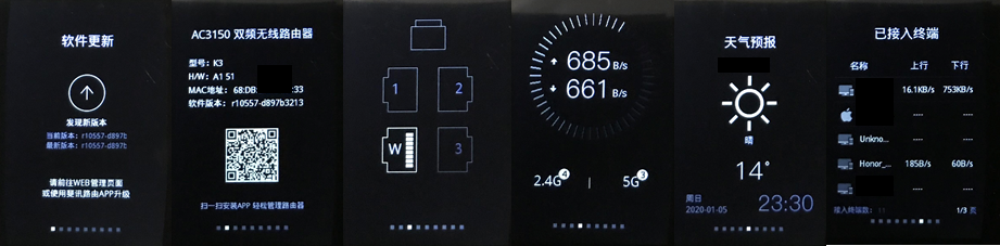 - 第四屏:网速以及2.4G和5G WiFi的接入客户端数量