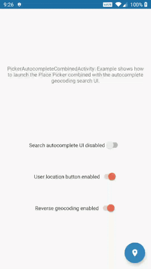 Resolves #818 by combining the Place Picker and geocoding autocomplete UI functionalities together. Several folks in #818 have expressed interest in having this.