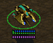 When an allied unit is selected a circle will appear below it, depending on the size of the unit. Also a bar indicating it's life (Green), Shields (Blue) and Energy (Purple) will appear below the unit.