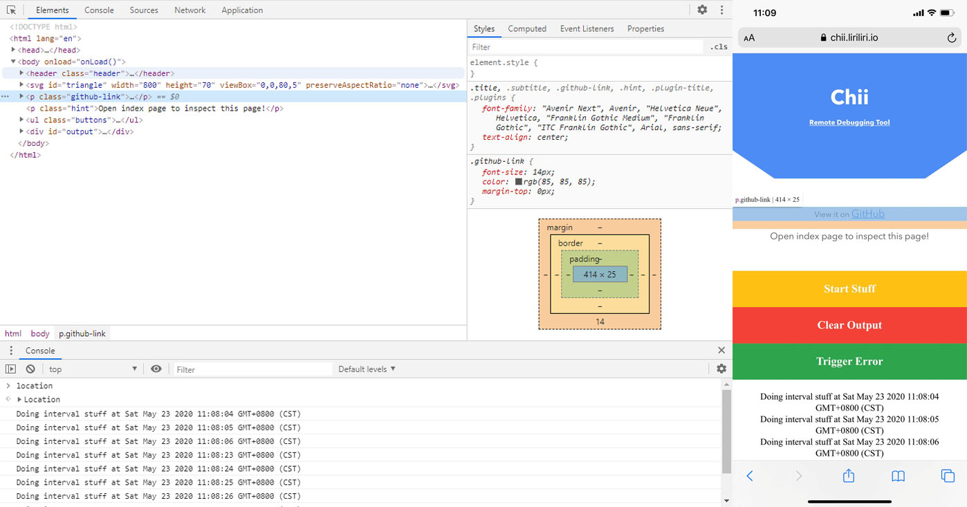 chii start -p 8080Use this script to inject the target code into your webpage.