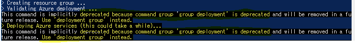So, it should fix from deprecated "az group deployment" to new "az deployment group" in create.ps1.