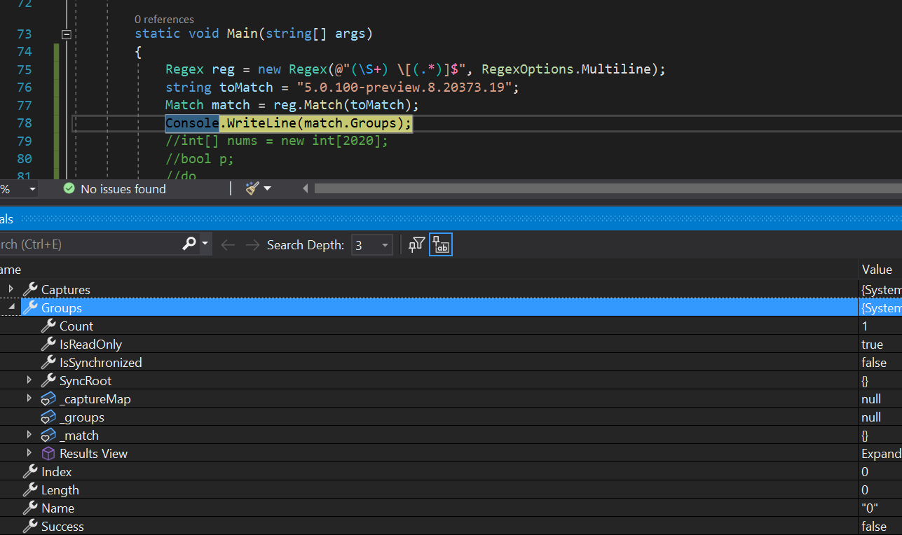 I tried that with "14.3.155-preview-02334alpha", and it didn't seem to work. I think \S is whitespace rather than non-whitespace characters (fixable with ^?) and it also makes it harder to parse out groups.
