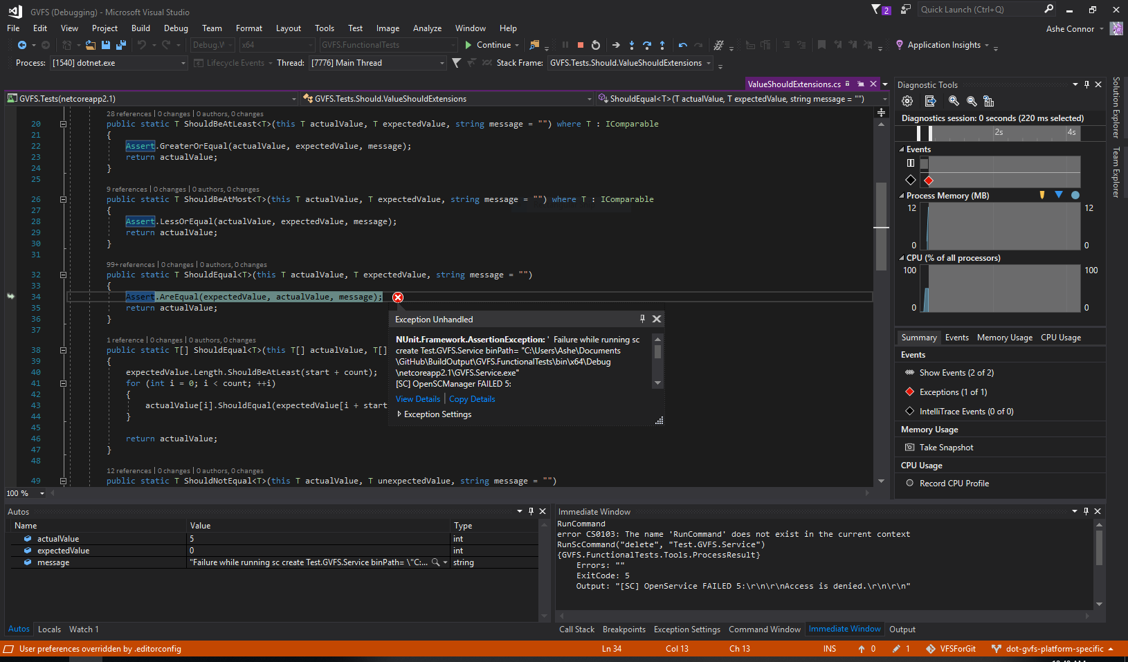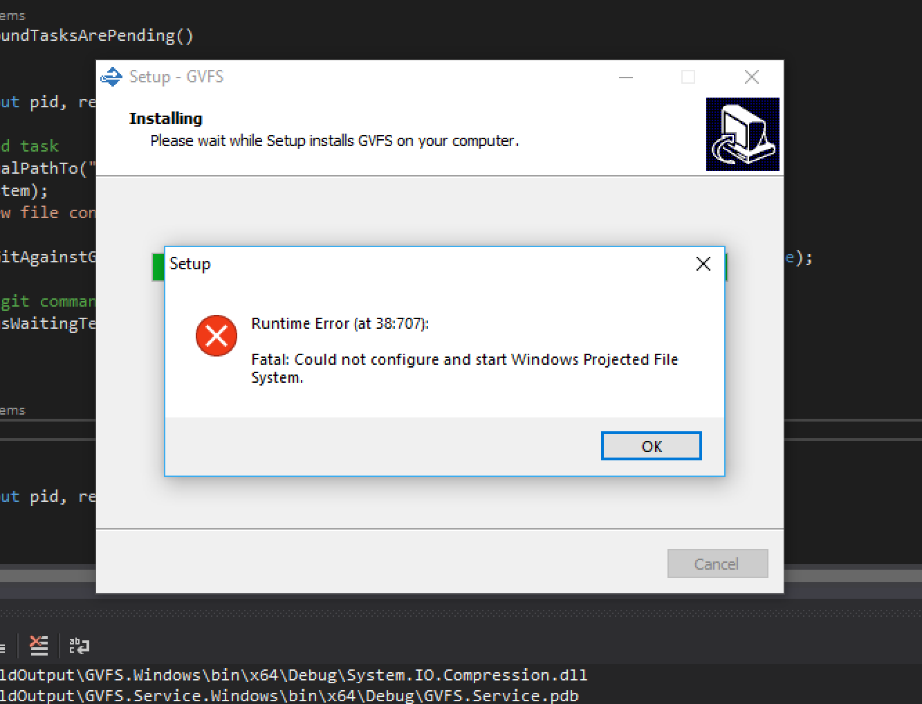 I ran VS as admin, and it failed because I have a feeling I am going to keep running into issues and that my approach must be fundamentally wrong. I've already spent hours on this — can someone give me a hand in getting a working Windows development environment for GVFS? Thank you. |