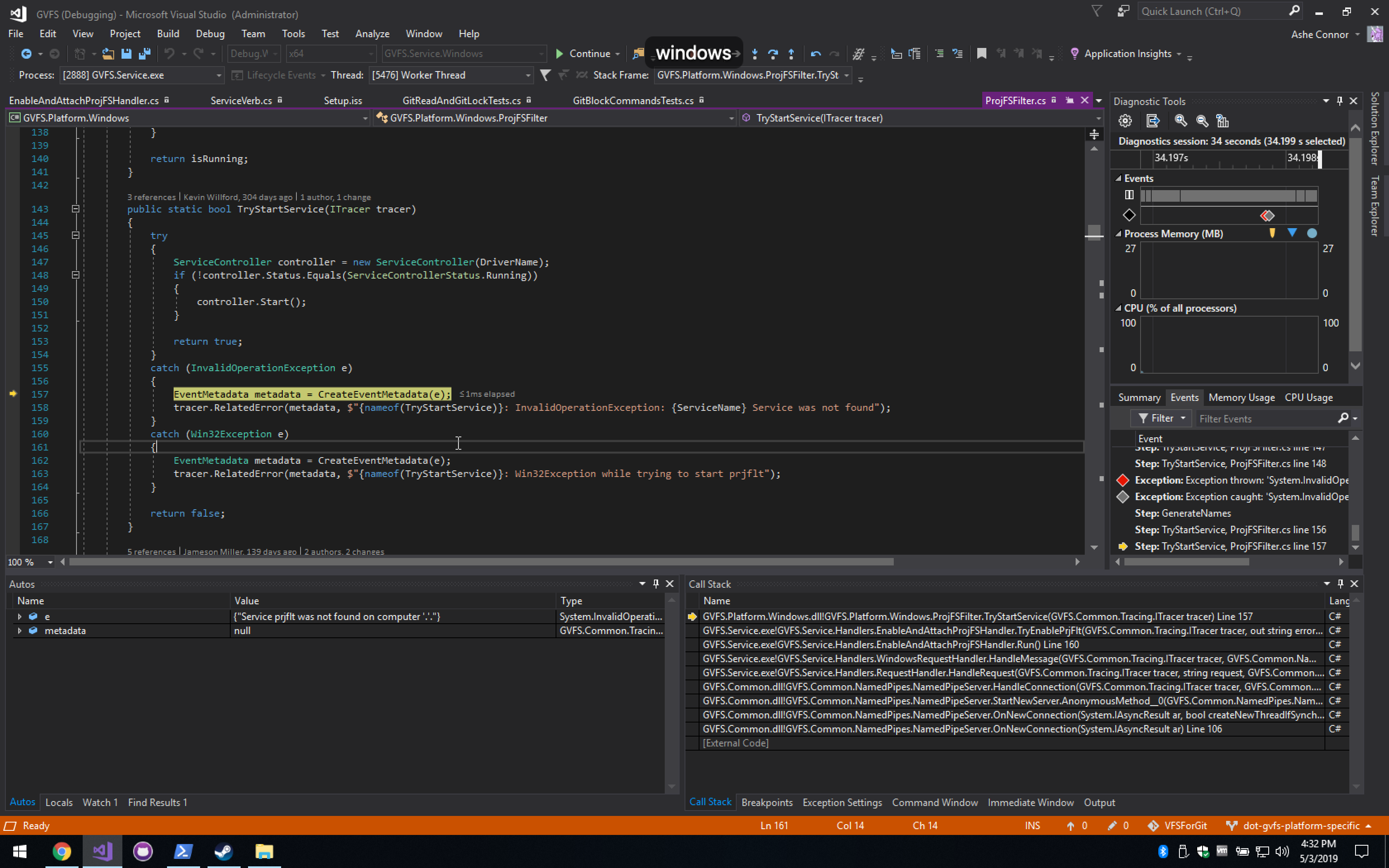 I ran However, I'm still getting: I hit continue and proceed to the next exception and get: The logs for the enlistment can be seen here: https://gist.github.com/kivikakk/df212ed8fdb1a5644d3e39472d13c187 Restarting the service and attempting the mount manually fails with the same message: It's the end of my working day, so I'll leave it here for now. Let me know if I've missed something obvious; it seems like I'm close! |