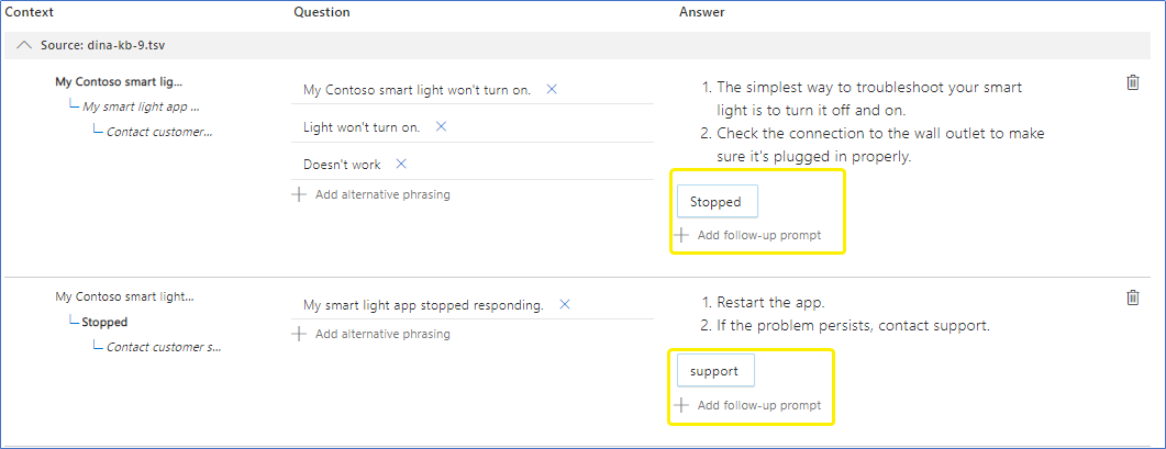 MultiTurnPrompt utterance recognized in the tester of the qna.ai site