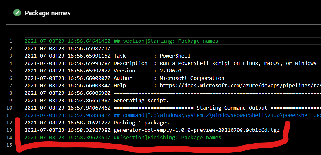 yarn, we replacednpm packwithyarn pack. These have different default behaviors, wherenpmwould create a tarball with the package name and version,yarnjust calls it "package." In our release pipelines there is a manual step to verify that the expected package will be published and it is slightly more difficult to discern when all the tarballs share the same name. This pull request:Screenshots