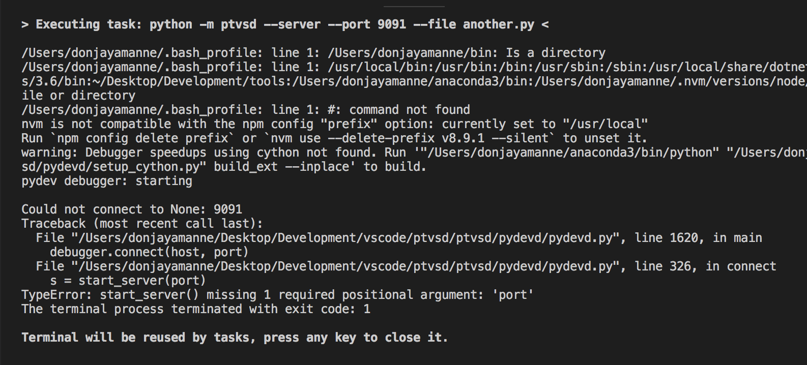 Running PTVSD fails (error message attached)