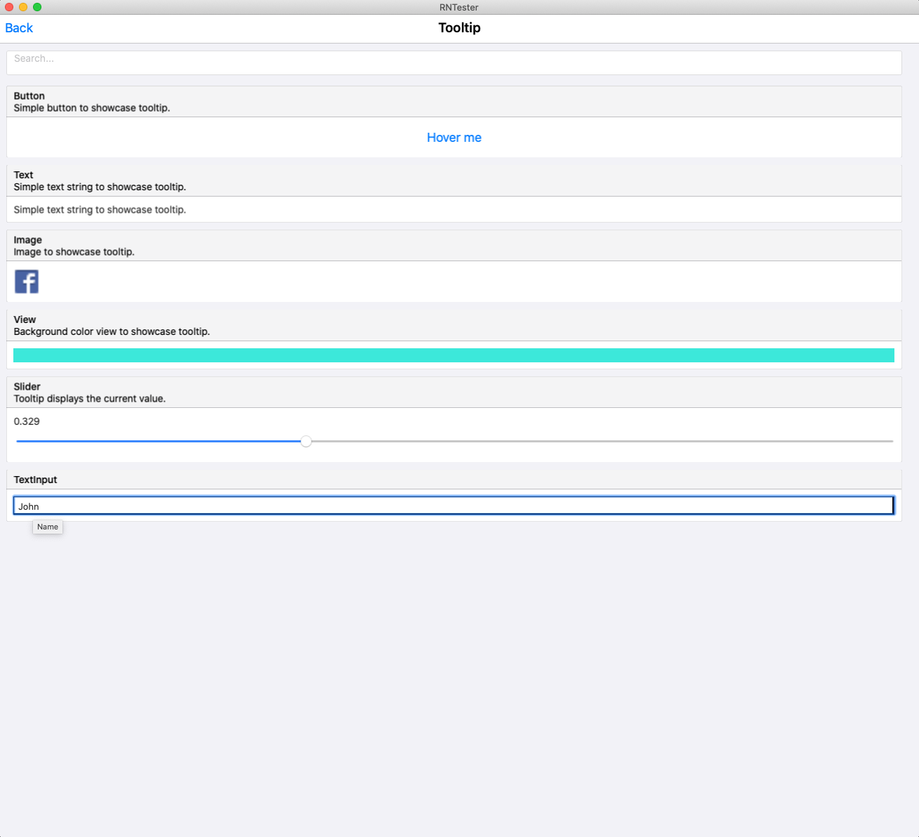 Sure, I added tooltip support to slider and text input. I think Checkbox has been removed from React Native and has a community module for it now - https://github.com/react-native-community/react-native-checkbox |
