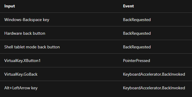 The BackRequested event does not fire in all of the scenarios where the user might be using input devices to go back. The linked UWP documentation in the PR description goes into some more detail on this, and outlines this in a table: