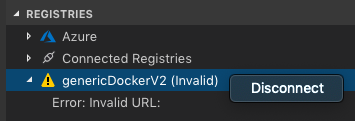 Now if an invalid registry is connected, it'll be displayed in the tree and users can right click on it to disconnect: