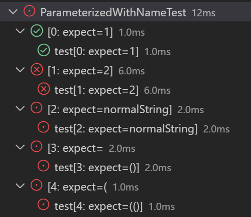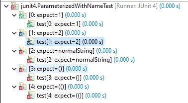Now when running JUnit4's parameterized tests, the appearance is like what it is in Eclipse: