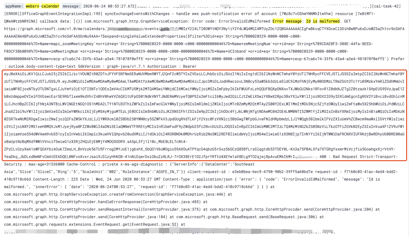 I use the graph sdk for java to get the event info, but I got wrong parameter to the request, the error should printed without any sensitive infomation.
