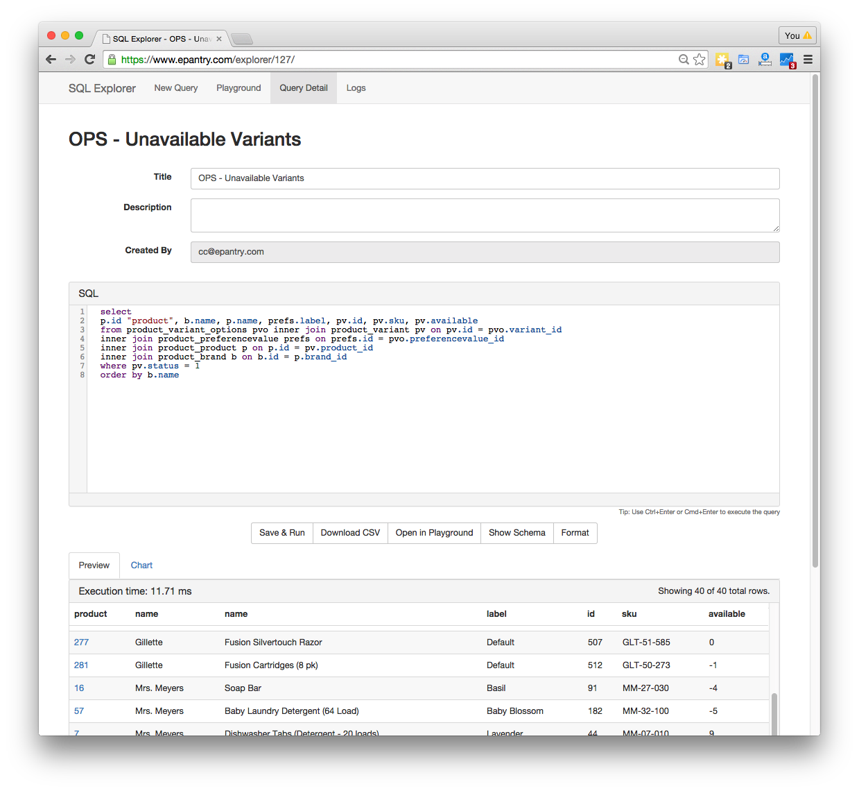 $$foo$$ in your queries and Explorer will build a UI to fill out parameters. When viewing a query like 'SELECT * FROM table WHERE id=$$id$$', Explorer will generate UI for the 'id' parameter. - Parameters are stashed in the URL, so you can share links to parameterized queries with colleagues