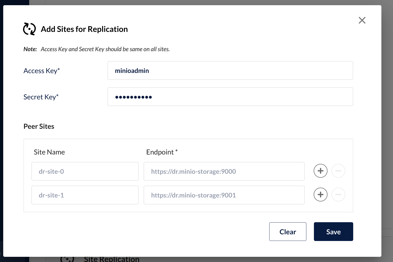 UI for site replication