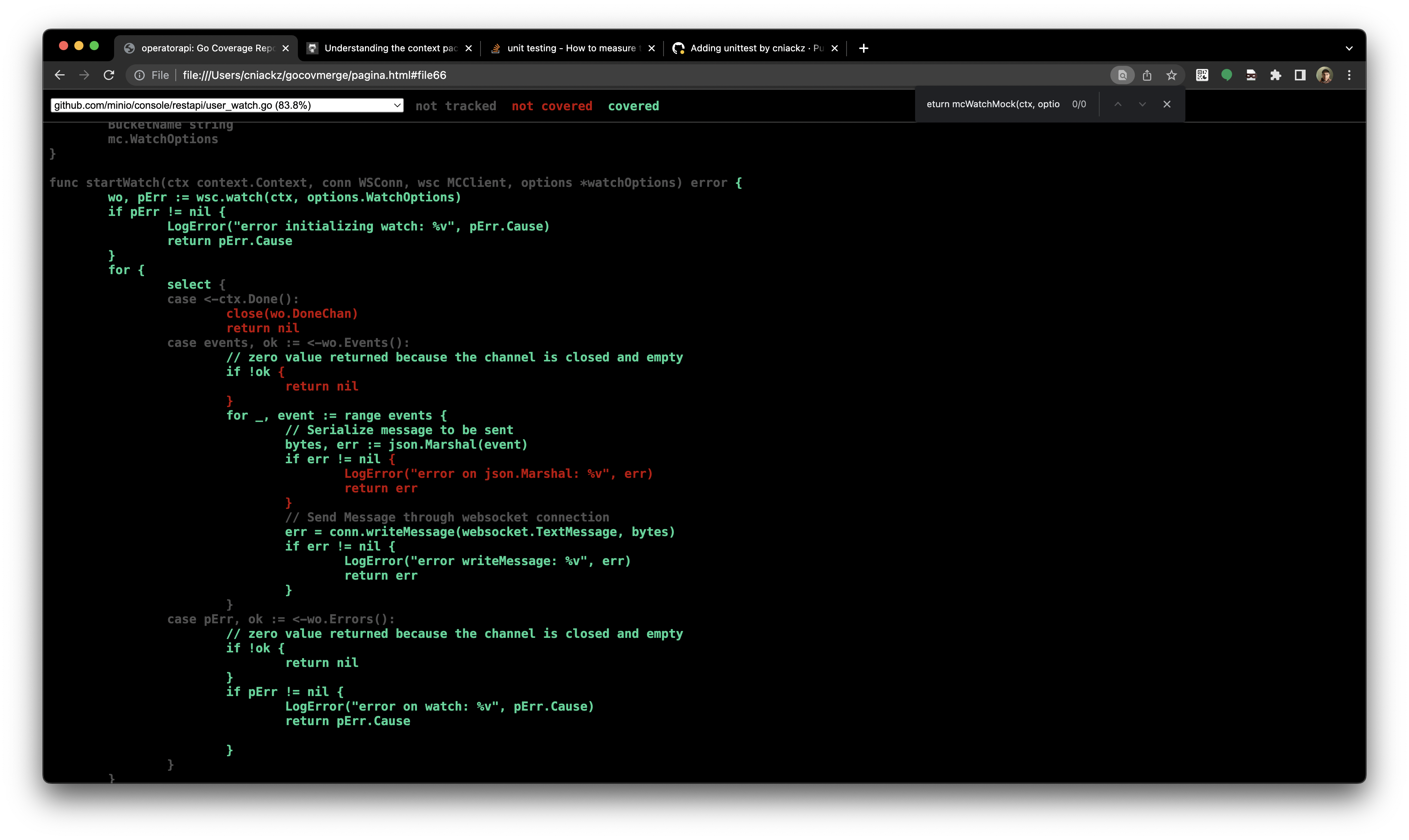 Adding unittest under user_watch.go #1833