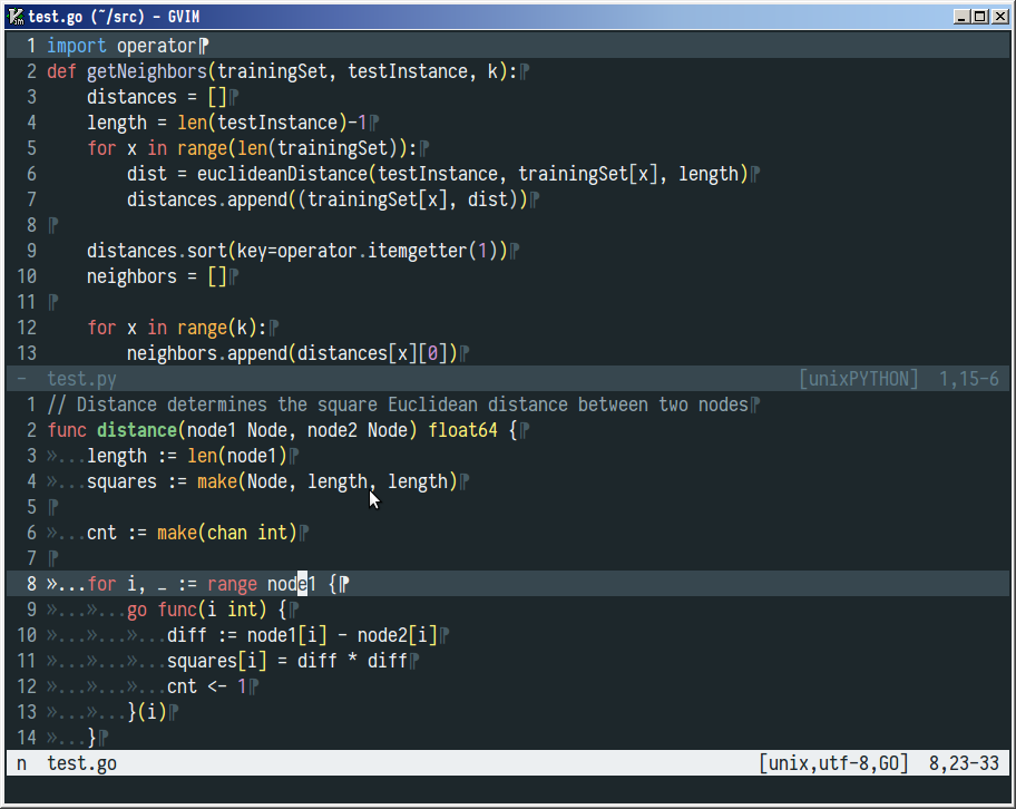 - Supported plugins: EasyMotion, vim-sneak, Indent Guides, indentLine, Rainbow Parentheses, Airline, GitGutter, Signify, ShowMarks, Signature, Syntastic, CtrlP, Startify