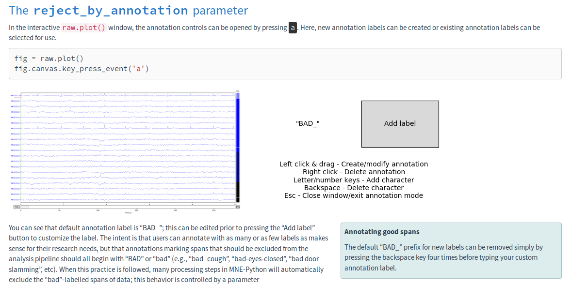* add bad channels / interpolation tutorial * add crossrefs * flesh out bad channels / bad spans tutorials * add crossref targets * remove cruft * fix url targets * better crossref name * add forgotten screenshot * fix flake * replace screenshot with spoofed keypress * address denis's comments * address mainak's comments * fix missing deepcopy
