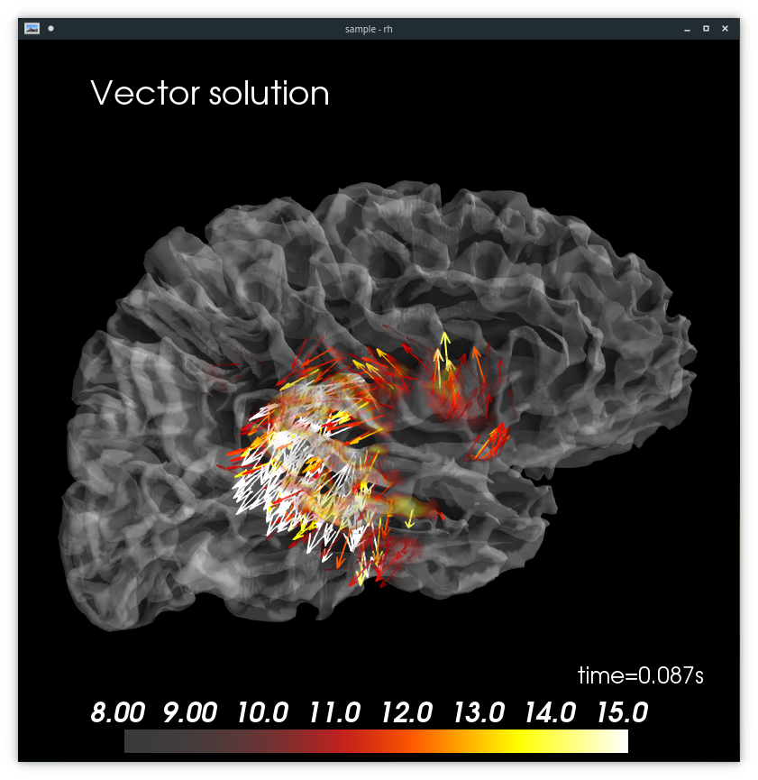 I found a small bug in this commit when trying to plot both hemispheres of the MNE source estimate in this script. Shown below is my traceback. Also, as a user I have to say that implementing the 3D glyphs would be much easier to view even though they take up slightly more space. Scaling by both length and thickness makes it immediately clear which vertices contribute the most. |