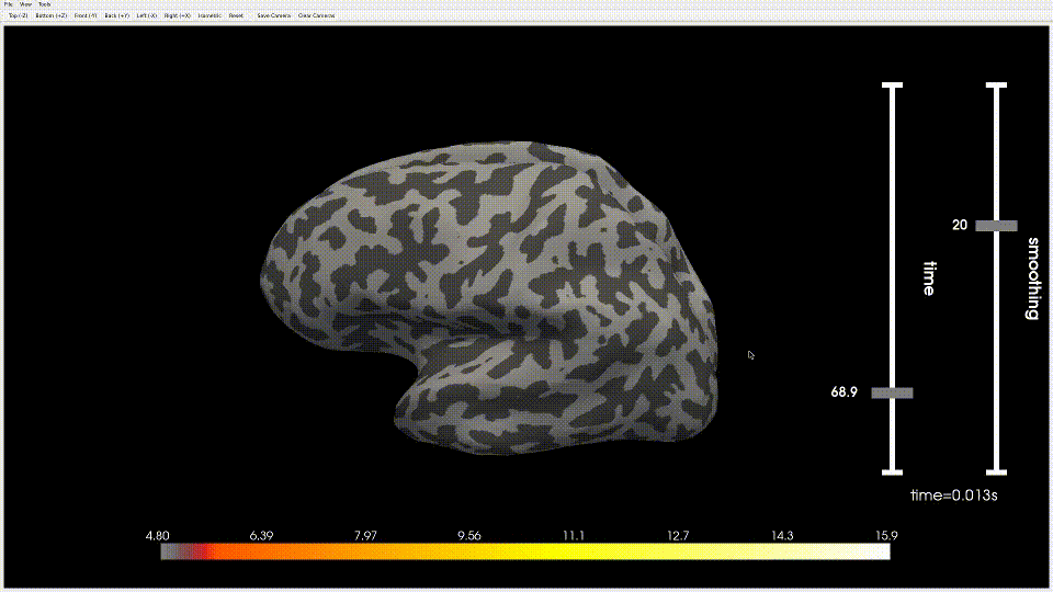 * Add basic version of smoothing_steps support * Update naming * Add support for hemi='both' * Remove unnecessary update * Add a second test slider * Fix returned parameter error * Add support for set_time_point * Fix test_plot_sparse_source_estimates() * Fix style * Improve coverage * Improve coverage * Update time label * Fix time_actor bug * Change default verbose parameter * Add shortcut to toggle_interface * Modify time slider to realtime * Fix segfault * Use latest dev version * Add experimental orientation slider * Fix style * Rework interface * Add some comments * Add prototype for colorbar sliders * Refactor orientation label visibility * Modify time slider to be horizontal * Switch to temporary interface * Update colorbar points * Add docs * Improve syntax * Use local import * Improve stability * Update feature overview table * Isolate the FutureWarning * Rework variable naming * Fix backward incompatibility * Update and trigger plot_visualize_stc.py * Remove report * TST: Disable offscreen rendering to allow widgets interactivity * TST: Try hotfix * Revert "TST: Try hotfix" This reverts commit 15193d1. * Connect scalar change to the colorbar * Change default values for smoothing * Hide time index * Setup IntSlider * Refresh UI * Use round function in custom sliders * Fix mesh scalar range * Manage when time or scalarbar is unavailable * Refresh UI * Add fscale slider * TST: Try to connect fscale to fmin/fmid/fmax * Fix docstring * Find a better range * Make better use of space for UI