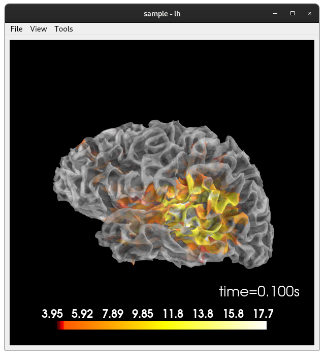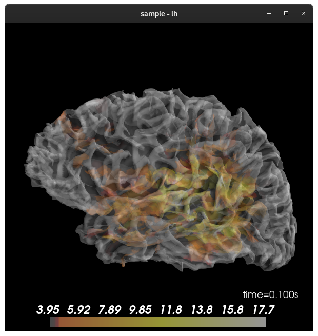 stc, kwargsline commented out) produces:The slight coloration of the brain itself differs because mayavi has backface culling on for the surface and our _Brain doesn't. I actually think our behavior is probably better for translucent brains.