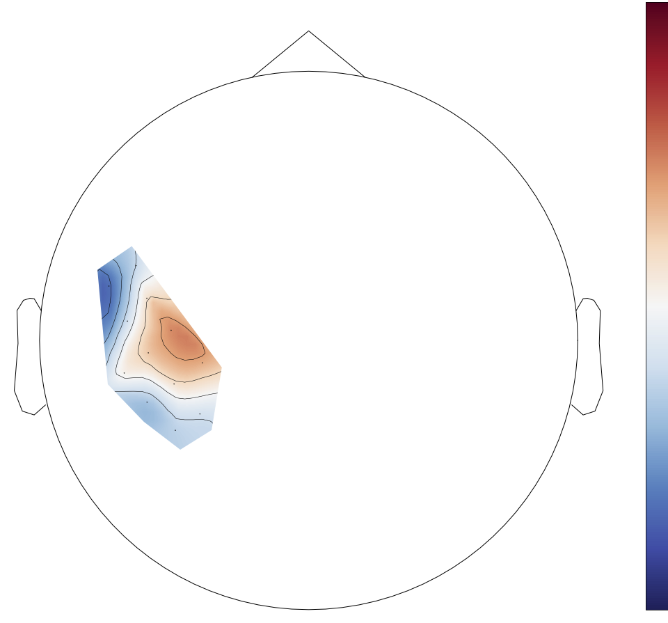 Example of topoplot with existing value (note the small black dots representing channels in little clusters)...