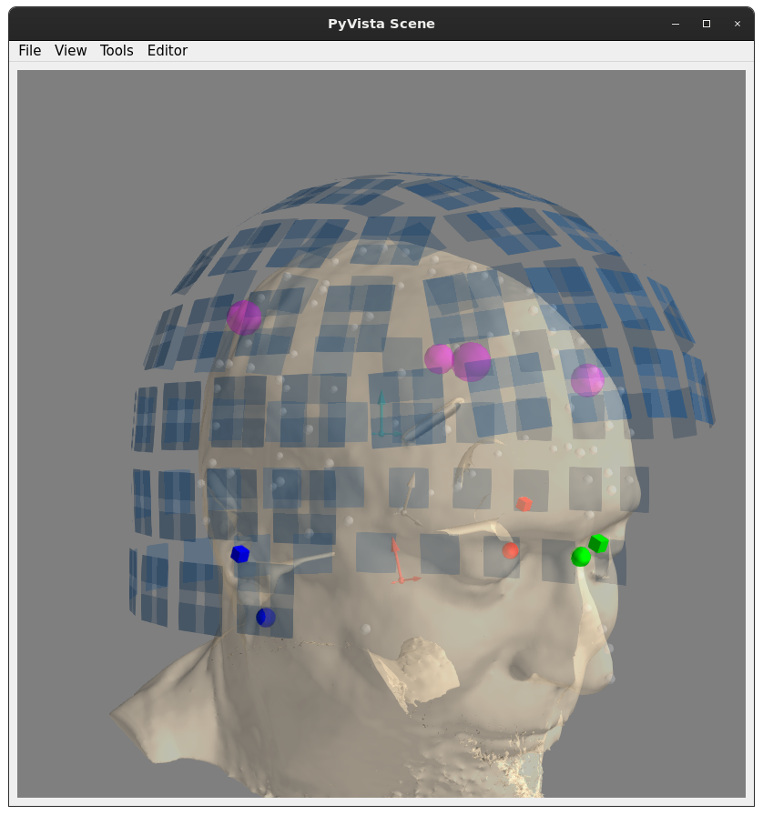 +1 for being consistent, and I think the yellowish head is more pleasant / easier to see than the gray one. Regarding fiducial size, etc, I think making them somewhat smaller would be OK, and I like the idea of MRI fids and digitizer fids being different geometric solids... actually I think a cube for one and a regular octahedron for the other would be ideal --- if you pick the relative sizes right it would make it really easy to tell if they line up: |