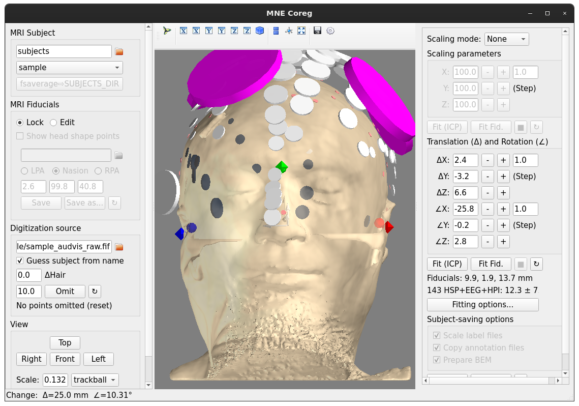 Okay I took a try with the cube. I agree octahedron would be better but it will be a pain to implement. Gives: And with "fit fid" you get a different alignment where the nasion is aligned, you can see they are on top of each other at least: And |