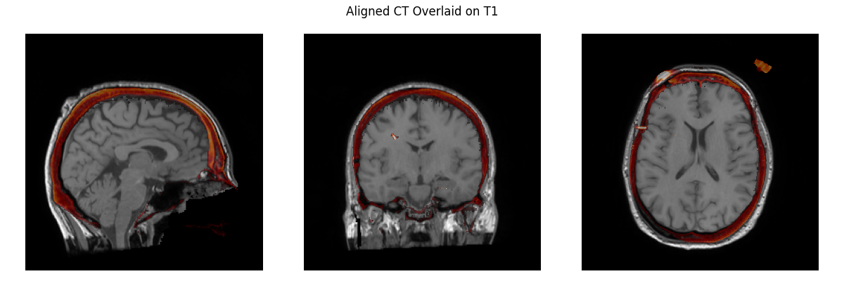 So this is what we have now: And this is what we have in I think it only differs by 1.2mm and 1.9 degrees from what you had before. I have a hard time seeing meaningful differences here, and if I didn't know which is which I'm not sure which I'd say was better, but I am no expert here! As much as I'm inclined to keep it, indeed we shouldn't keep something if you think it is "way off" even if I can't see it. I thought you had said before that the MR-CT was now okay, but since it's not I agree perhaps the easiest thing to do is just to revert to the old affine and commented out code for the MR-CT step, and revisit sometime later how to use our standard pipeline to get an affine of equivalent quality. |