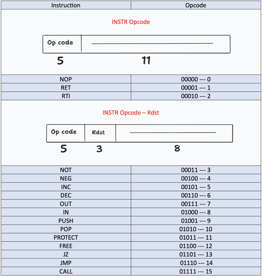 - Registers: Eight 4-byte general-purpose registers (R0 to R7), a program counter (PC), and a stack pointer (SP).