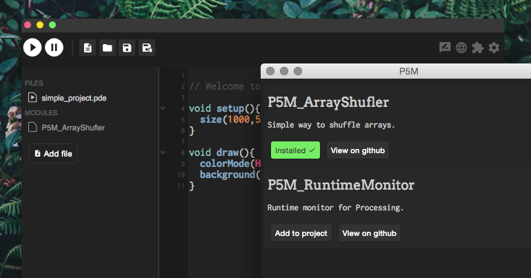 I'm working with a dependecy injection for Processing called P5M, this version let's you use these modules in your project.