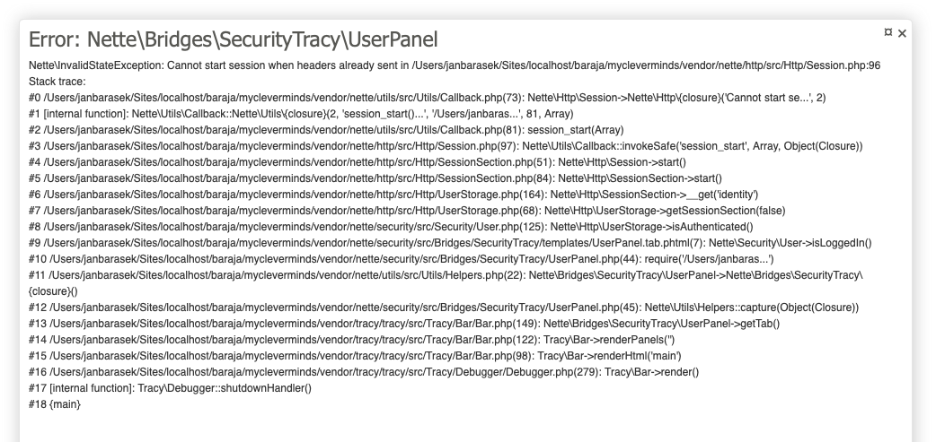 When headers has been sent and session has been closed panel throw exception like this: