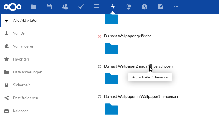 Mouseover should be describing target, which is "Home" or "Root" of the Nextcloud.