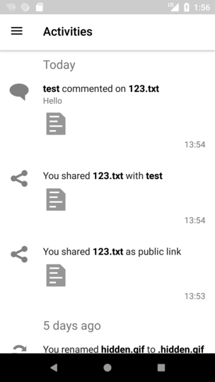 We are re-using the activity stream, which can be accessed via drawer -> activities, so each change will also affect the other stream: