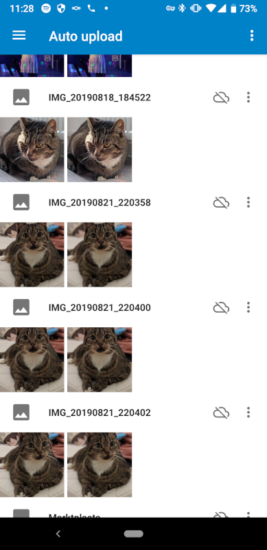I took four photos of my cat with Motion enabled. They get stored in the default camera folder (which I am syncing) at /storage/emulated/0/DCIM/Camera/, but Nextcloud thinks the Nextcloud photos are actually folders within the Camera folder.