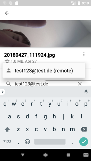 Can you give me a quick guide how to share a file via email? (on webUI, I see "test123@test.de (email) |