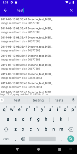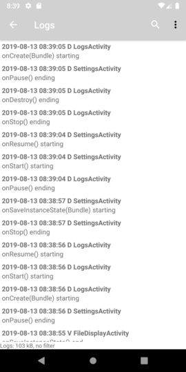 * added log search in logs browser * added logs browser view model test * added universal async filtering utility * refactored async runner and added manual runner * migrated logs browser to Android DataBinding and Kotlin * disabled imports ordering Ktlint rule as IDE does not support ktlint ordering * added some missing tests around logger Closes #4311 Signed-off-by: Chris Narkiewicz <hello@ezaquarii.com>