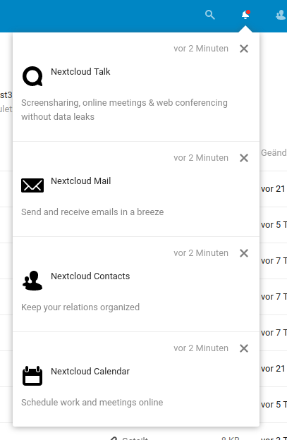 Very cool @juliushaertl! :) Agree with @karlitschek that at the moment it’s a bit unclear what the notification is trying to tell. Maybe a simple text before would work, like "Install Nextcloud Talk" or "We recommend to install Talk" or something like that? |