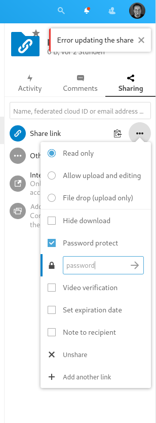 0. Needs triagePending check for reproducibility or if it fits our roadmapPending check for reproducibility or if it fits our roadmapbugfeature: sharing