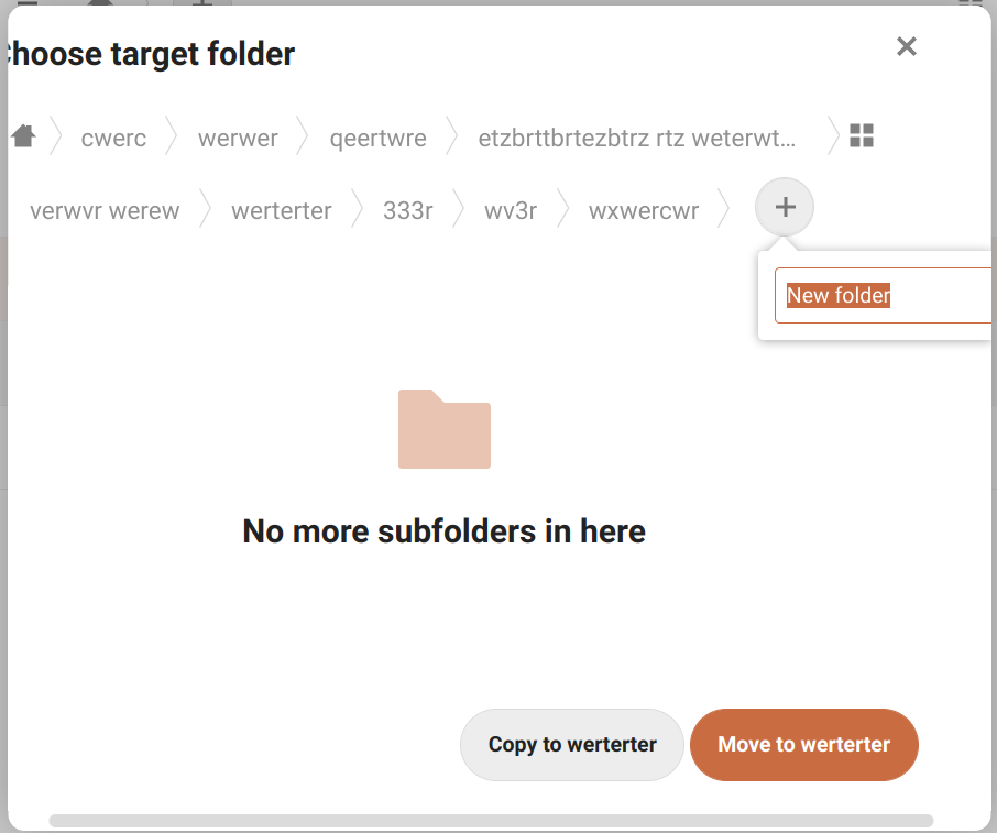 - Navigate into "fifth folder" (or make it so that the "+" button is on the right side of the dialog)